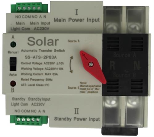 • Description Solarix Dual Power ATS 63A 2 Pole Automatic Change Over Switch Kit